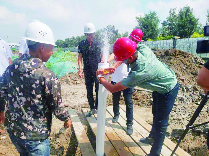 經開區觀天下二期項目用水工程從報裝到通水僅用了40分鐘。圖為工作人員打開水管閥門。“驚喜!”20日, 上午,在經開區觀天下二期項目的工地.上,吉林富騰集團房地產開發有限責任公司總經理助理陳中秋看著水管里冒出的水流,高興得合不攏嘴。
